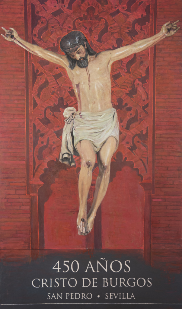 Se trata de una devoción traída a Sevilla. «De la misma manera que la imagen del Cristo de Burgos, que pertenece a ese colectivo que llegaron hace 500 años a la ciudad, se les ocurre encargar el Cristo de su devoción, pero ellos quieren traer su esencia y recrean a su Cristo de Burgos».